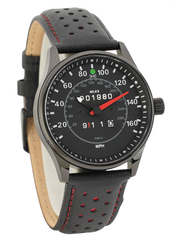 The dial of the watch is based on the original speedometer dial, giving it a nostalgic and authentic character.